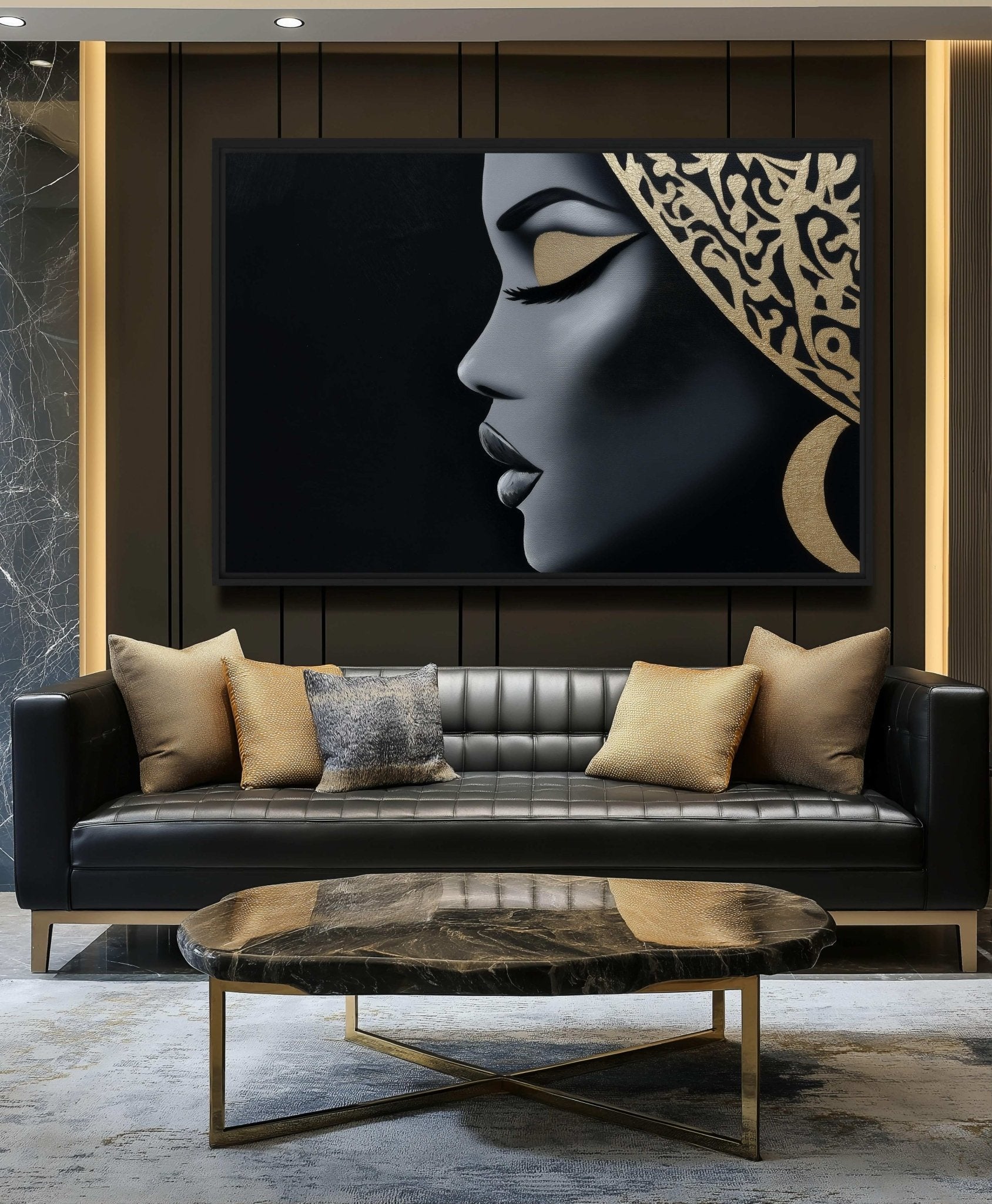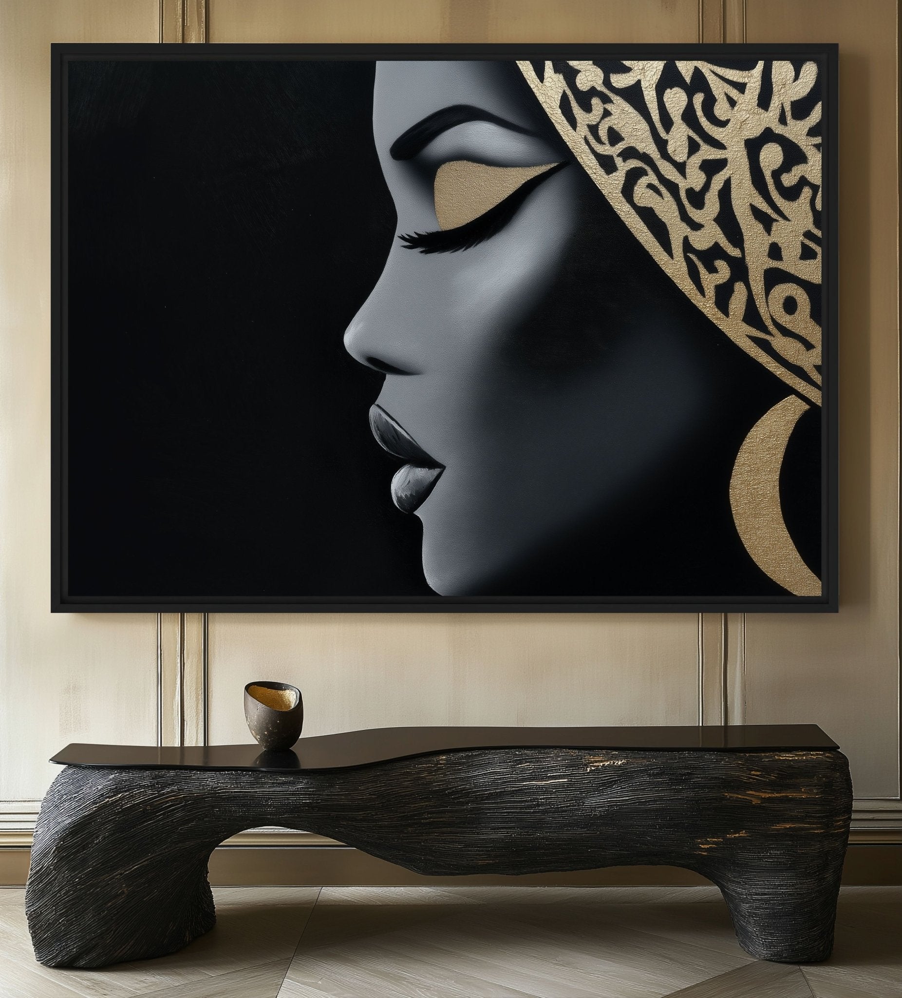 The African Queen Luxury Art is inspired by the regal beauty, pride, and strength of African heritage. It celebrates feminine power and cultural richness through elegant design and luxurious tones, symbolizing confidence, dignity, and grace.