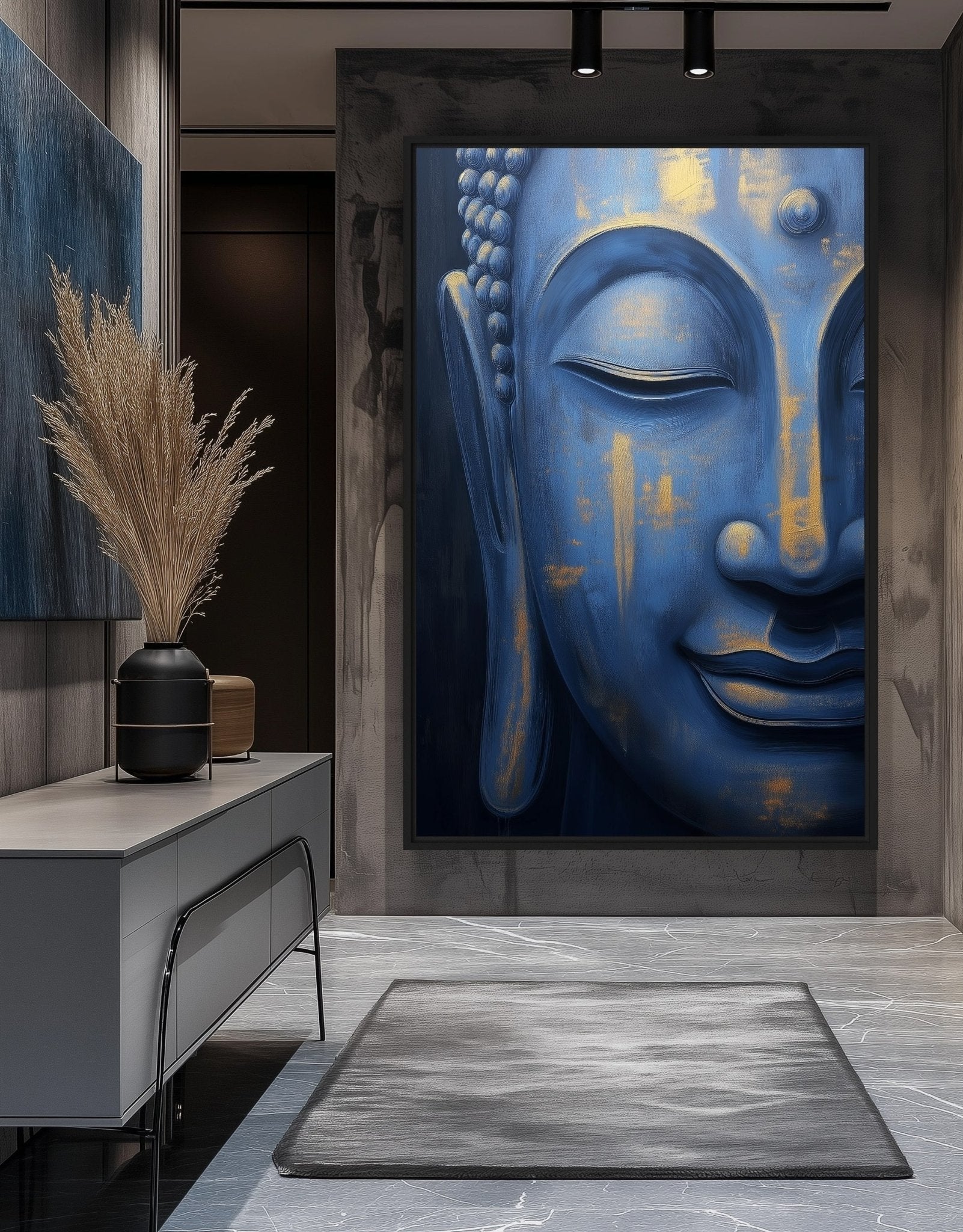 Inspired by inner peace, mindfulness, and spiritual awakening, Blue Buddha Spiritual Art reflects calm, wisdom, and balance. The soothing blue tones symbolize tranquility and clarity, while the Buddha figure represents enlightenment and compassion. This artwork evokes a sense of stillness and emotional harmony.