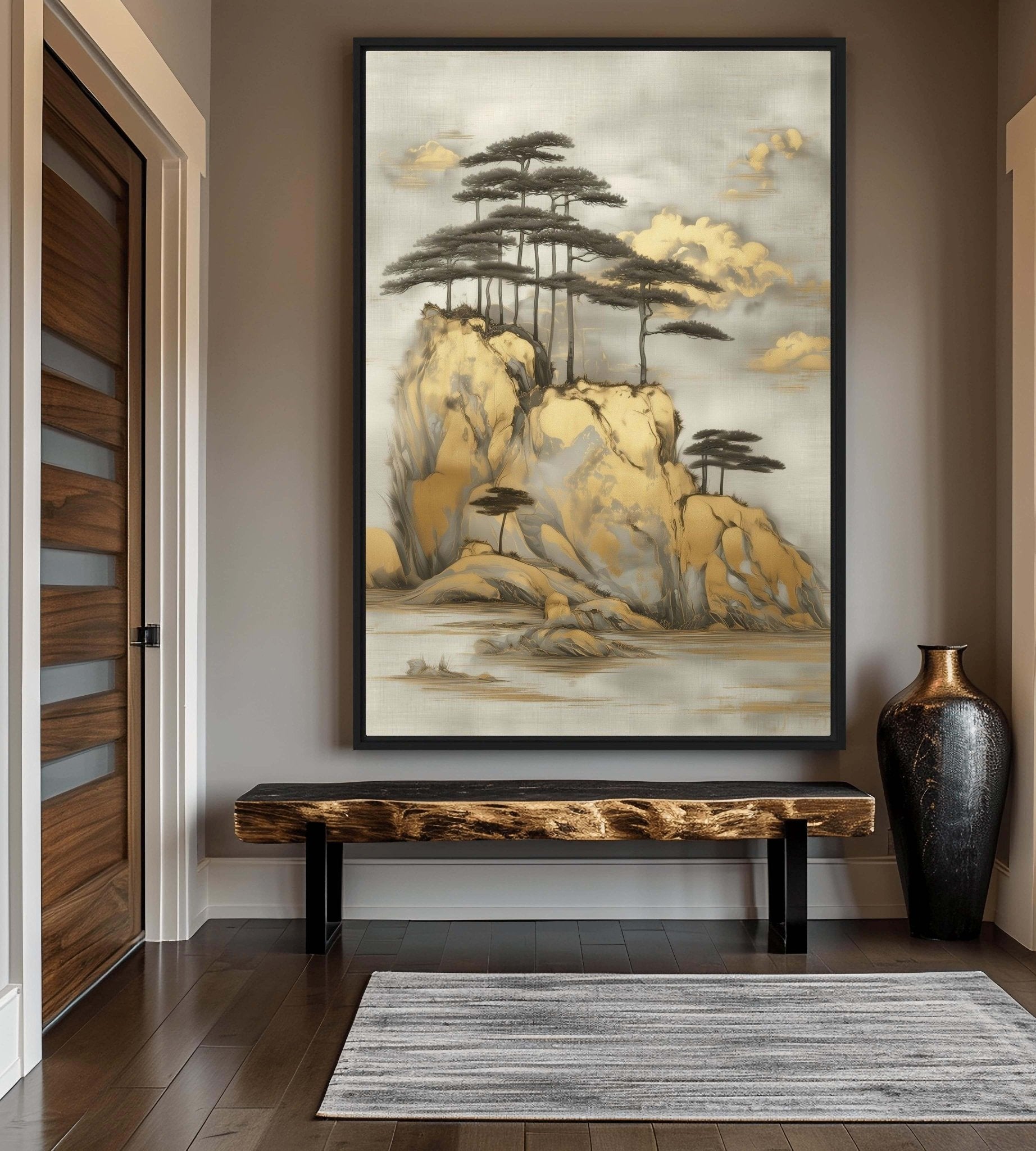 Designed to evoke calm and reflection, this Japanese landscape wall art brings a sense of tranquility and sophistication to home decor. Its contemporary style enhances modern interiors, creating a serene focal point that celebrates both nature and art.