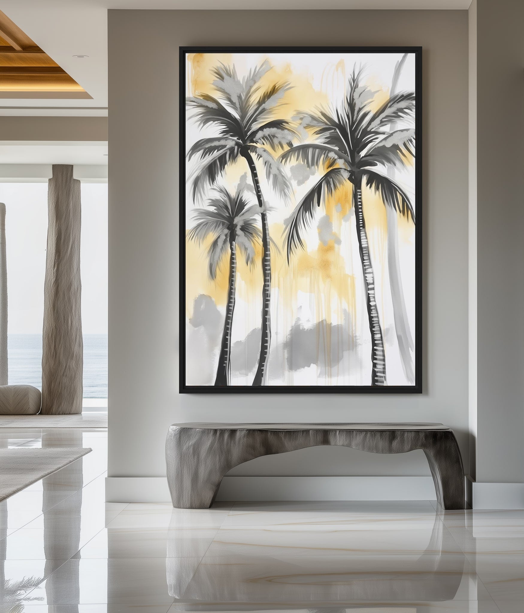 Inspired by sunlit tropical landscapes, Palm Trees Tropical Art reflects the calming rhythm of nature and the sense of escape it brings. The flowing palm forms symbolize relaxation, freedom, and harmony, creating a peaceful emotional connection. This modern art piece captures warmth and balance, inviting calm energy into any interior space.