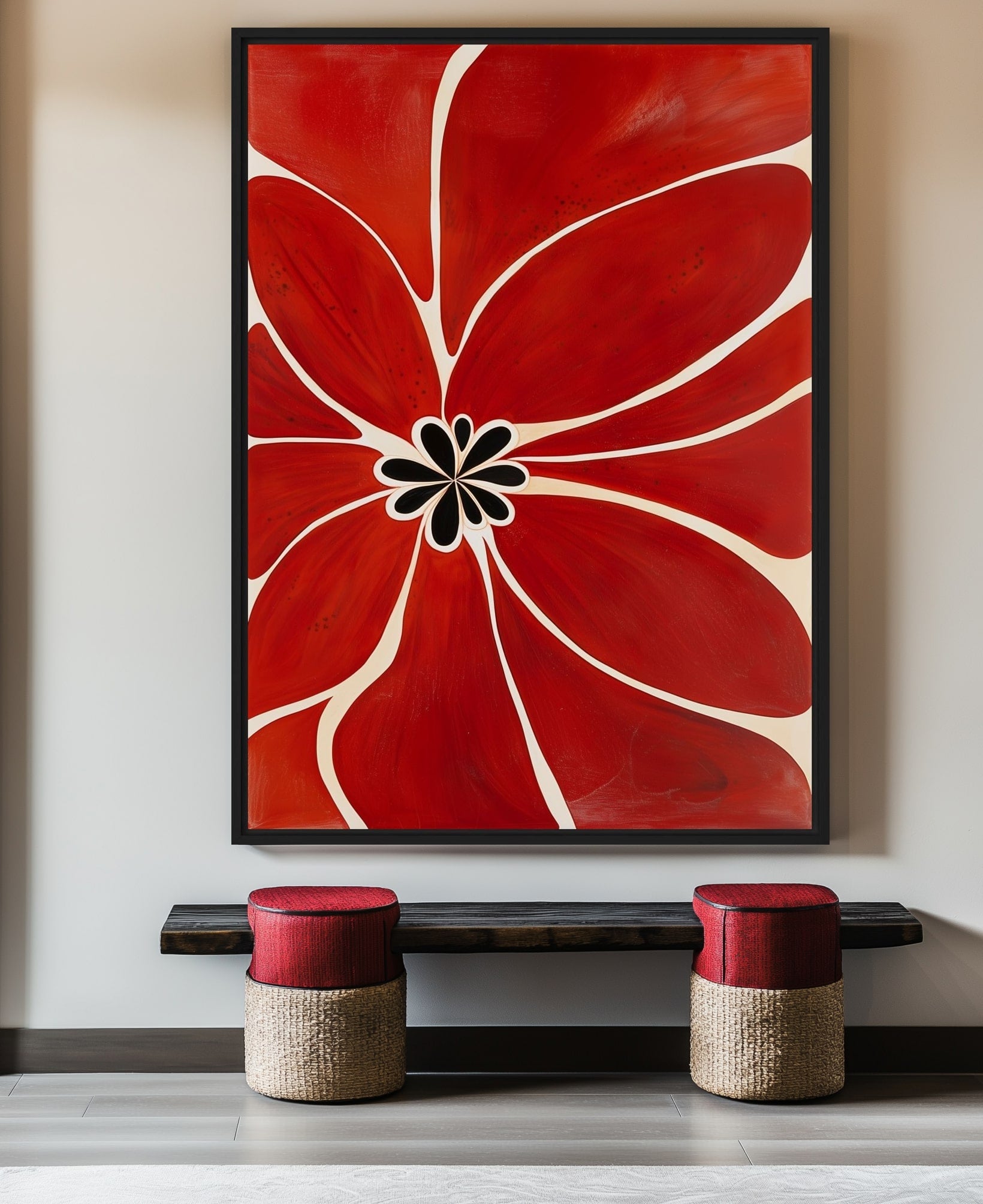 Minimalist red flower art print with graceful simplicity and elegance. PaintFu offers delicate décor perfect for bedrooms, clean interiors or modern styling.