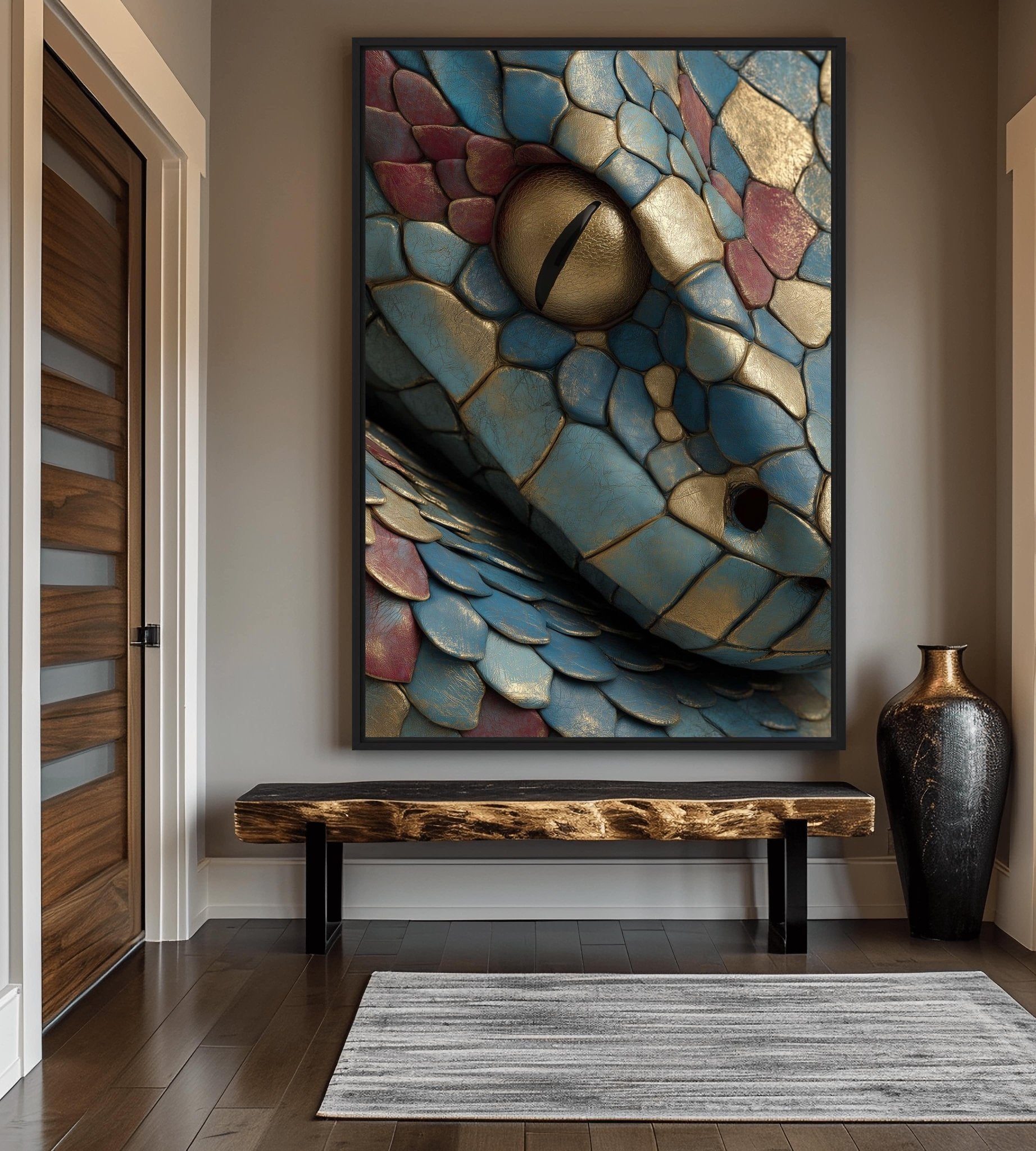 This artwork is inspired by the fluid elegance and mysterious presence of the snake, reimagined through bold abstract forms and dynamic textures. The serpent symbolizes transformation, intuition, and the hidden energy of nature, giving the piece both depth and intrigue.