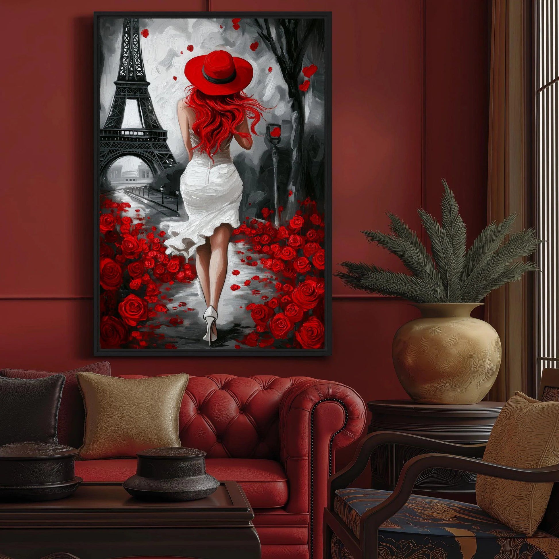 Romantic Paris woman digital print with feminine charm and dreamy style. PaintFu delivers elegant décor perfect for bedrooms or European-inspired homes.